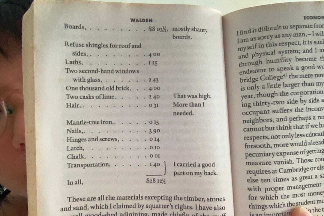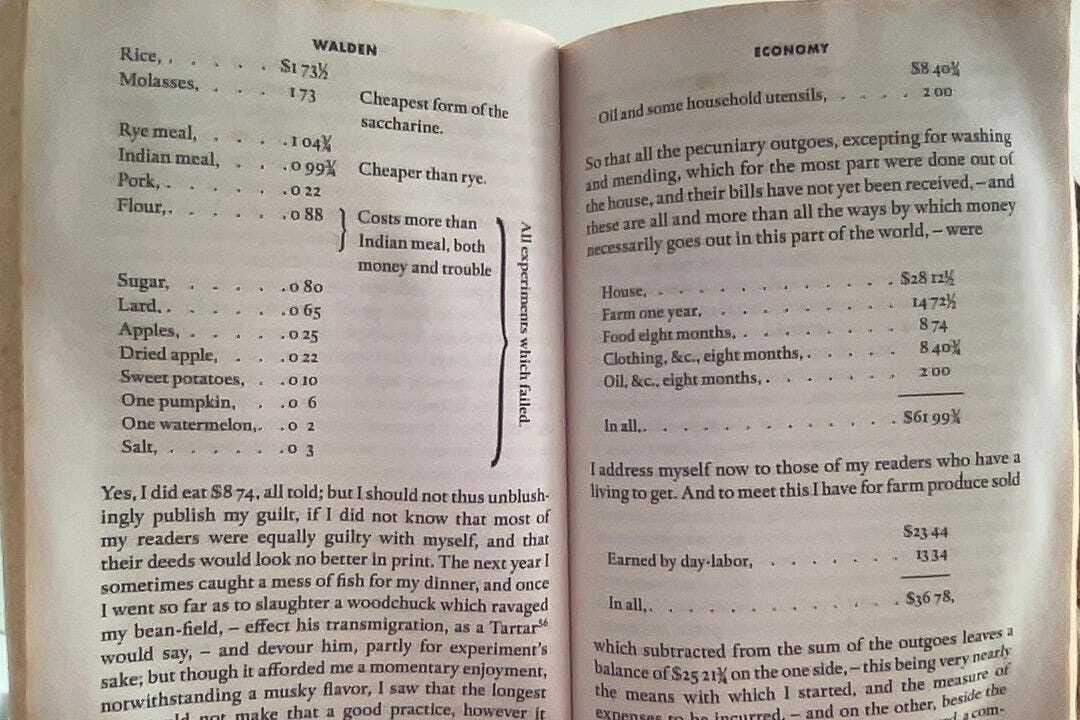 Thoreau incurred quite a hefty US$14.72 (US$536 today) on tools, labour and seeds to start his farm.